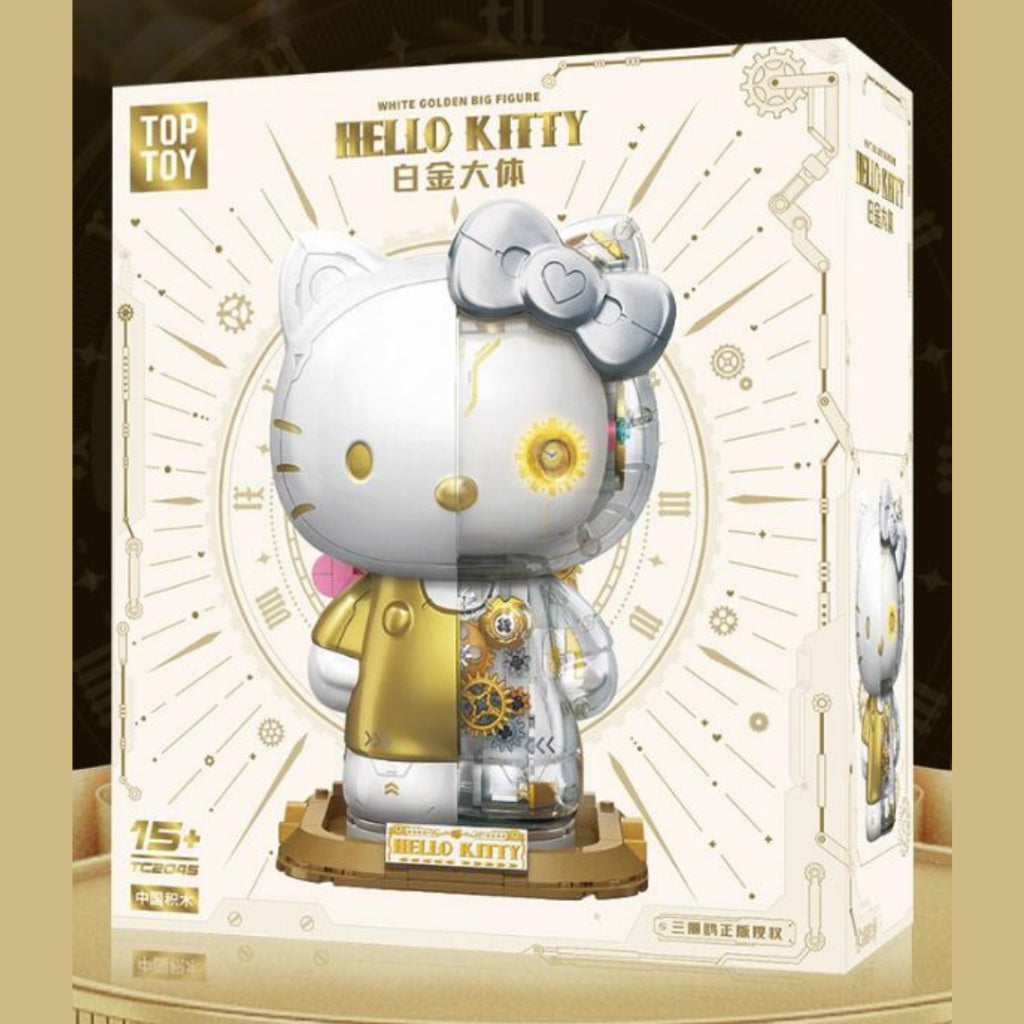 TOPTOY Sanrio Hello Kitty Mechanical Figure, 400 Pcs White Gold 3D Model with Light