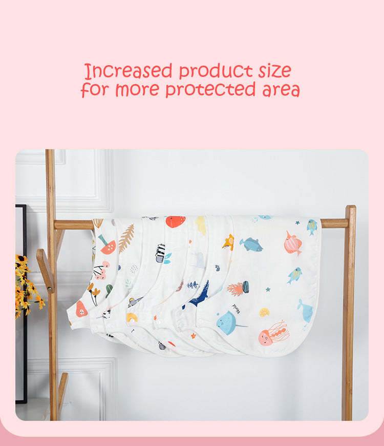 Full Shoulder Coverage - they are wide enough to cover your shoulders. The unique shape and snap buttton prevents the burp rags from slipping.