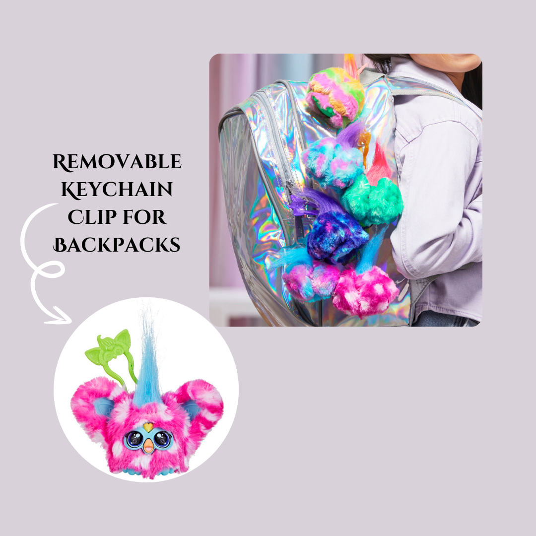 Y'all are going to love Dah-Tee the country music Furblets friend! Hear over 45 country tunes and sounds with this mini Furby electronic toy for girls and boys 6 years and up. Dah-Tee has pink and white polka dot fur to bring that bright country vibe. Also plays fun music and sounds in Furbish (but doesn't speak human languages). Clip them to a backpack or other travel bag with the keychain clip to bring the Furblets toy anywhere you go.