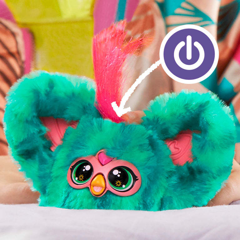 - 3 WAYS TO ACTIVATE MUSIC & PHRASES: Press the beak for fun feeding noises and tap the heart gem for music. The top of the head activates fun Furbish phrases and is also the on-off switch
