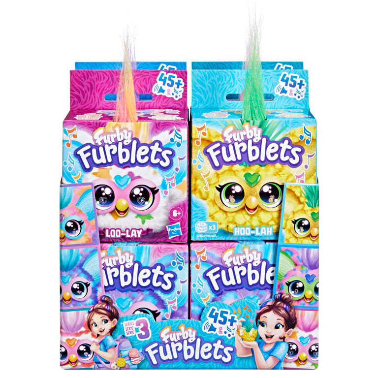 Hear over 45 rockin' tunes and sounds with this mini Furby electronic toy for girls and boys 6 years and up. Also plays fun music and sounds in Furbish (but doesn't speak human languages). Clip them to a backpack or other travel bag with the keychain clip to bring the Furblets toy anywhere you go.