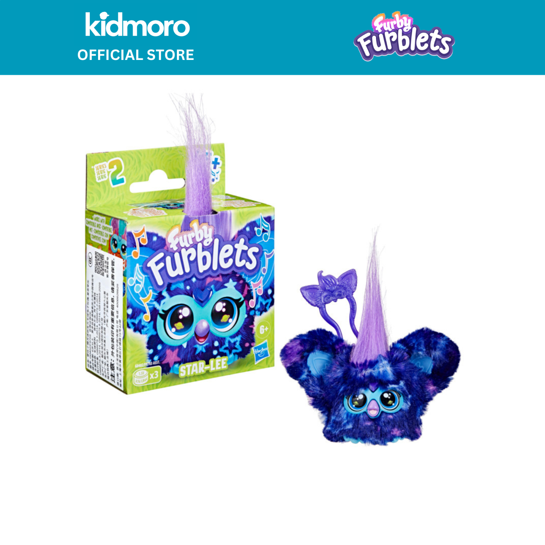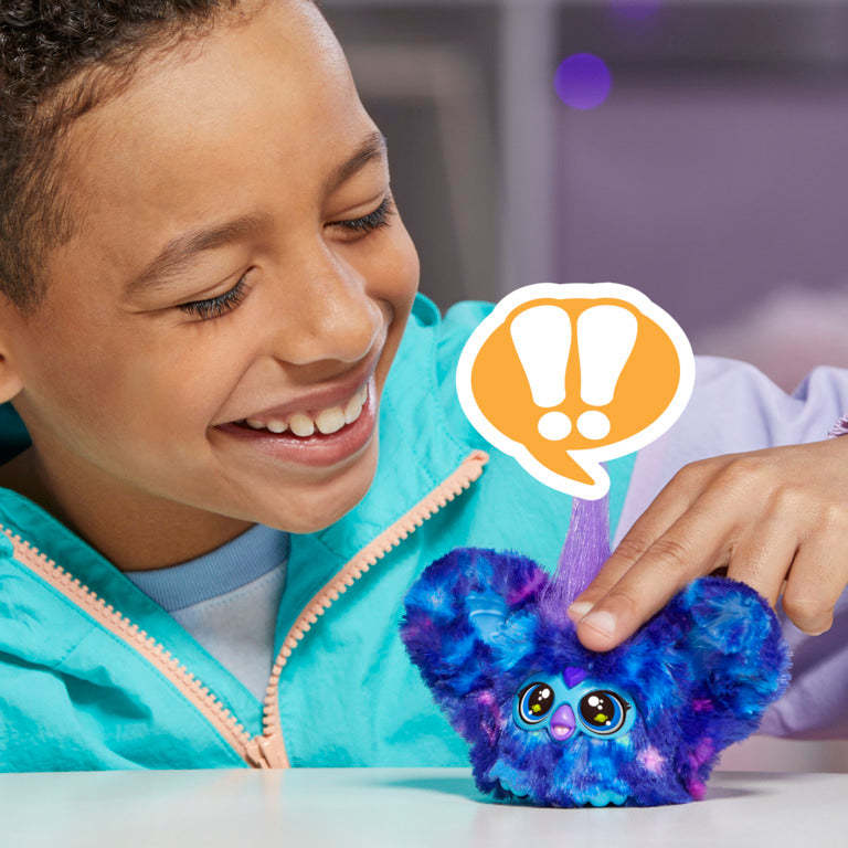 Reach for the stars with Star-Lee the outer space Furblets friend! Hear over 45 galaxy tunes and sounds with this mini Furby electronic toy for girls and boys 6 years and up. Star-Lee has dark blue fur with light blue and purple stars to inspire out-of-this-world vibes. Also plays fun music and sounds in Furbish (but doesn't speak human languages). Clip them to a backpack or other travel bag with the keychain clip to bring the Furblets toy anywhere you go.
