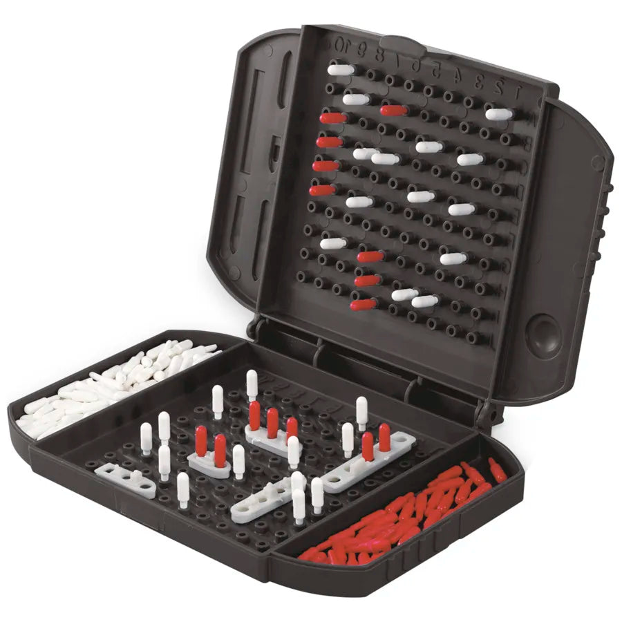 Includes 2 battle cases, 10 ships, red pegs, white pegs, and instructions.