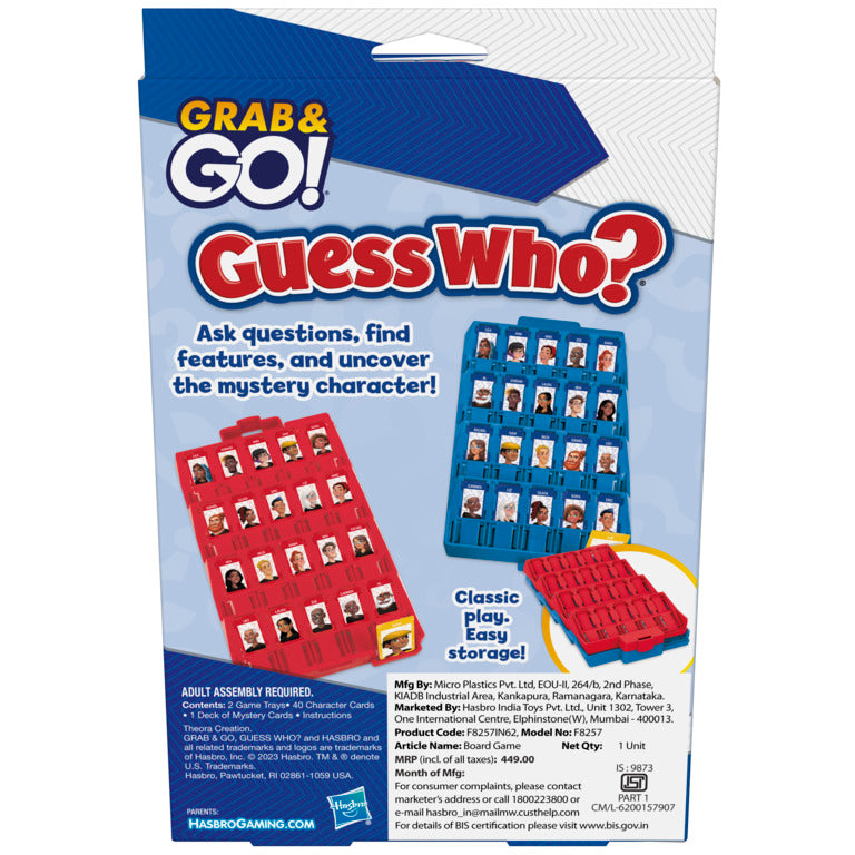 FUN TRAVEL GAME FOR KIDS: Easy to set up, this travel-size Guess Who? Grab and Go game for 2 players is an entertaining game for road trips, plane rides, train rides, camping trips, and vacations