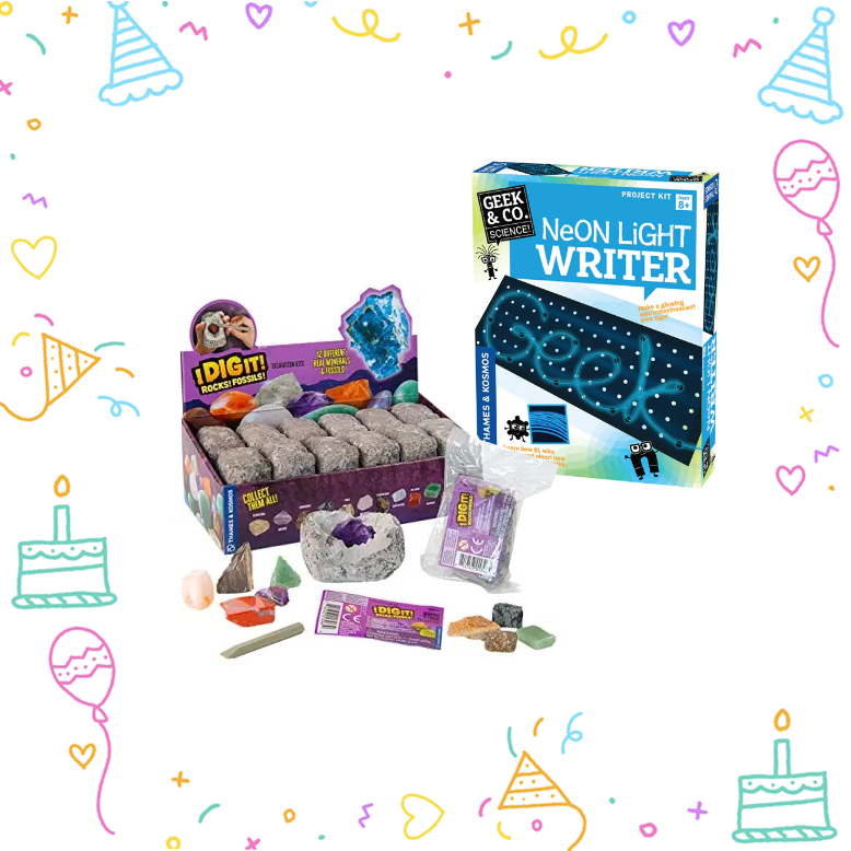 Lab Kid Goodie Bag for Boys Age 6 - 12 Years, Thames & Kosmos Neon Light Writer and Mineral Egg