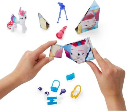 - HOOF TO HEART ACCESSORIES: Zipp figure comes with Hoof to Heart accessories that plug into her hoof! Pose her with entertainment-inspired accessories, including a pretend magnifying glass