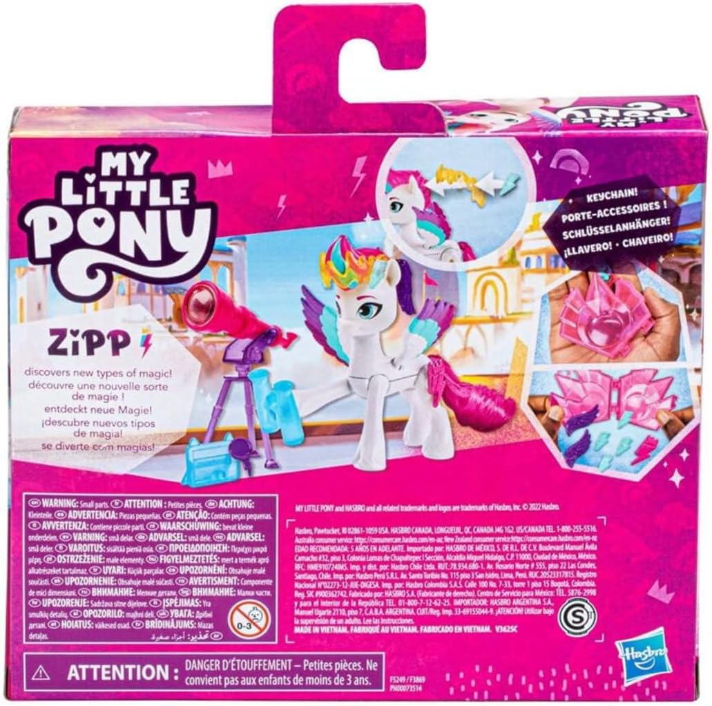 - CUTIE MARK MAGIC WITH ZIPP: 3-inch pony is white with pink hair, inspired by the My Little Pony: Make Your Mark show. Comes with plug-in lightning bolt Cutie Mark charm and hair accessories!