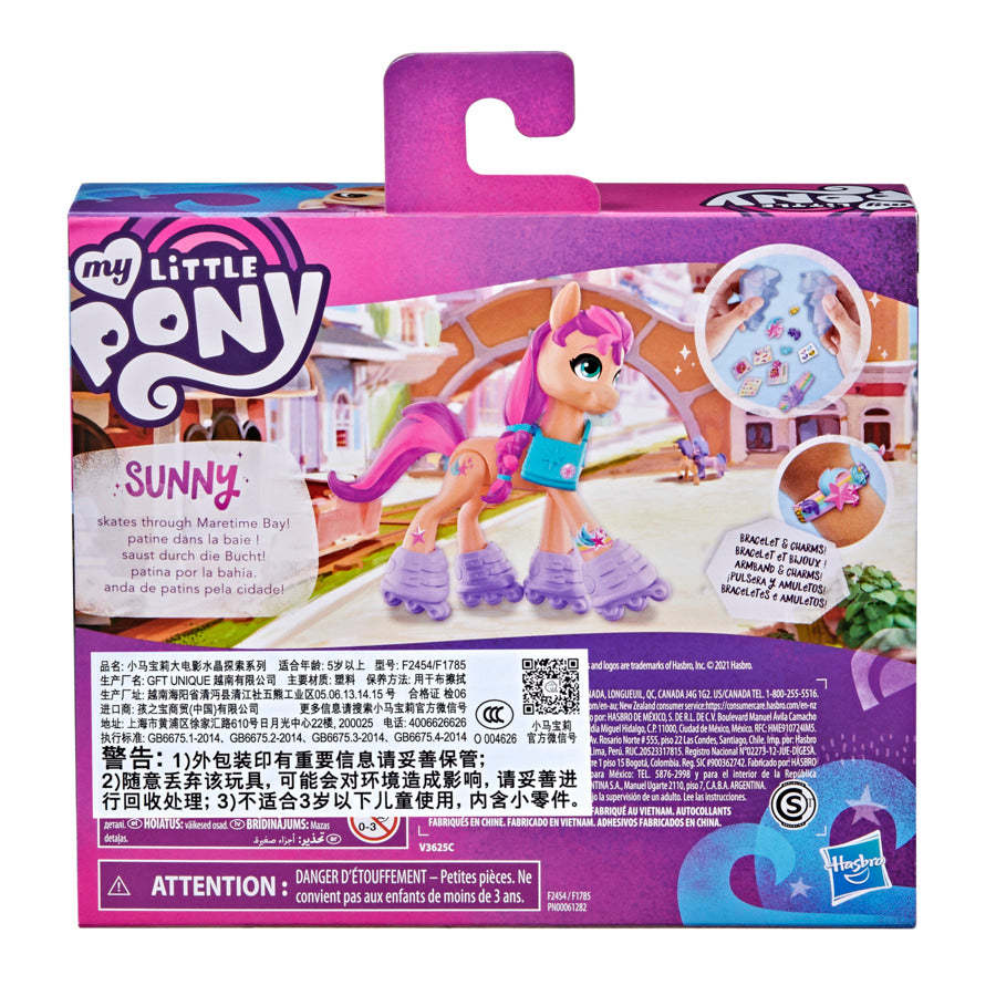 Includes an articulated 3-inch Sunny Starscout orange pony figure with molded pink hair in her signature braided style. Figure has a character-inspired shooting star Cutie Mark on one side. Crack the reusable crystal-shaped container in 2 to reveal hidden story and customization pieces. Comes with stickers and charms for decorating the pony, her roller skates, and other accessories. Includes friendship bracelet and temporary tattoo for kids.