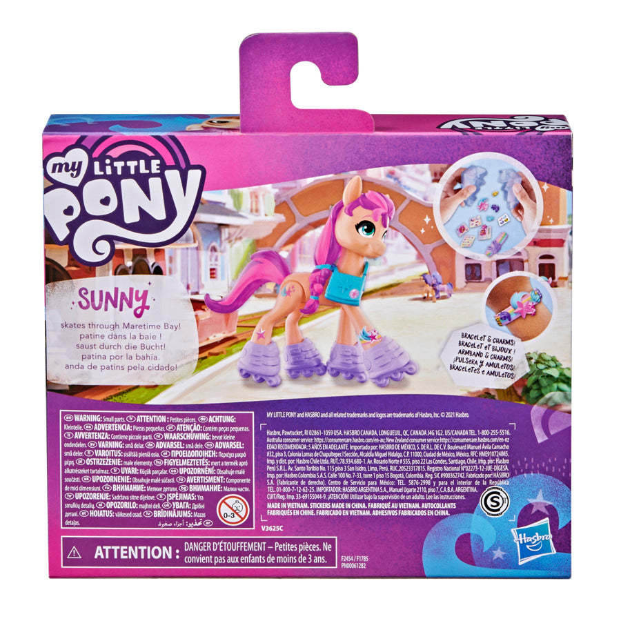 MEET SUNNY STARSCOUT: Sunny Starscout is an adventurous orange Earth Pony from Maretime Bay. Articulated 3-inch figure has molded pink hair and a shooting star Cutie Mark