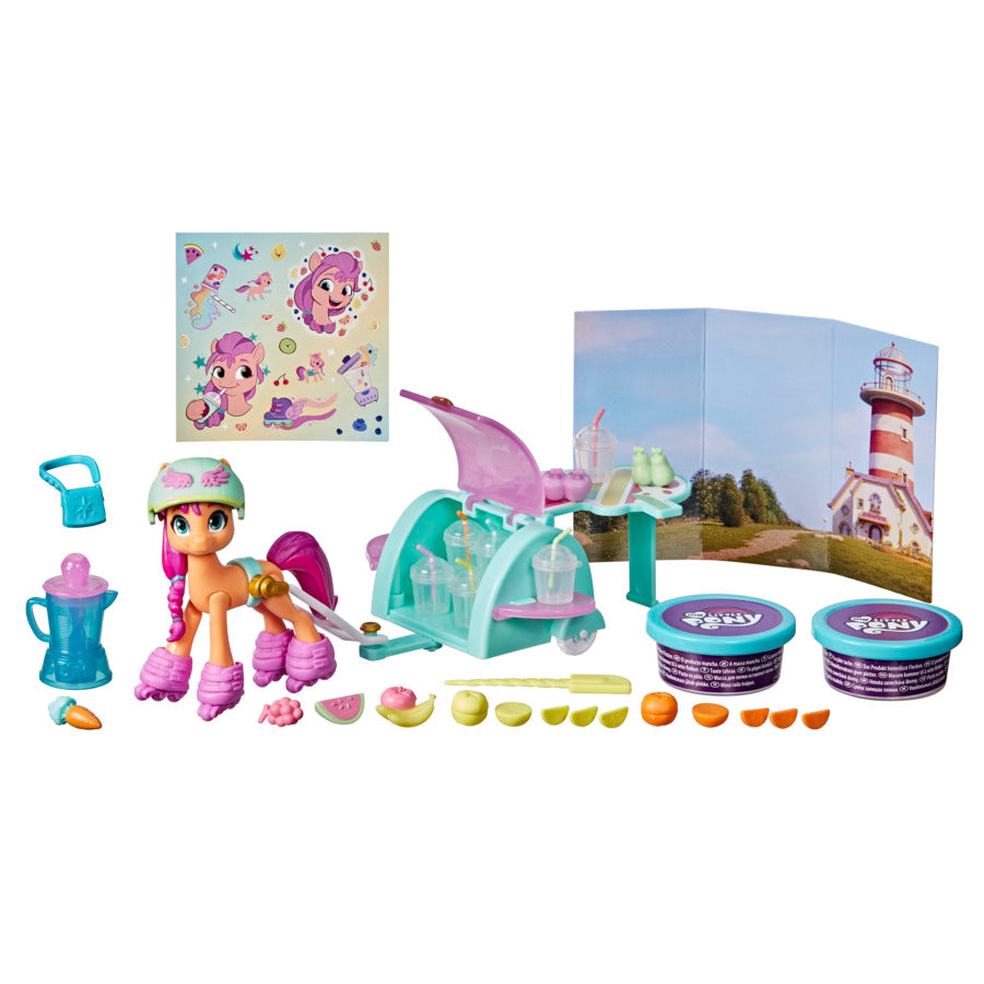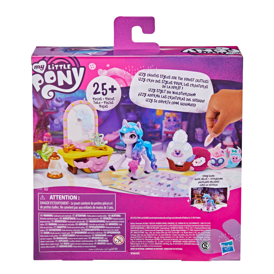 Each set comes with over 25 character-inspired accessories for storytelling moments and customization. Kids can create DIY critter friends or pretend smoothies. Sets also come with a story scene backdrop inspired by the My Little Pony: A New Generation movie. Look for Story Scenes Izzy Moonbow and Sunny Starscout toys for kids ages 5 and up (Each sold separately. Subject to availability.)