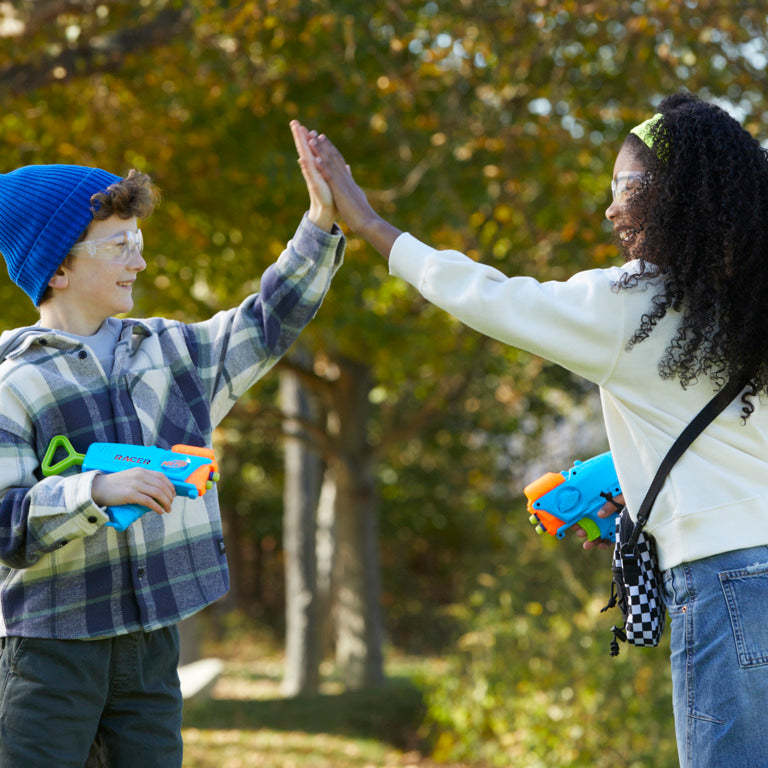 Nerf Elite Junior Racer Easy-Play Dart Blaster, 4 Nerf Elite Darts, Nerf Blaster Outdoor Toys For 6 Year Old Boys & Girls & Up
