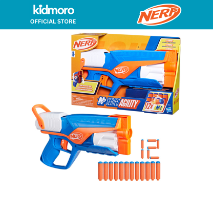 NERF N SERIES AGILITY BLASTER: The compact Agility blaster is a perfect choice for highly mobile backyard games. Compatible only with Nerf N Series N1 darts
