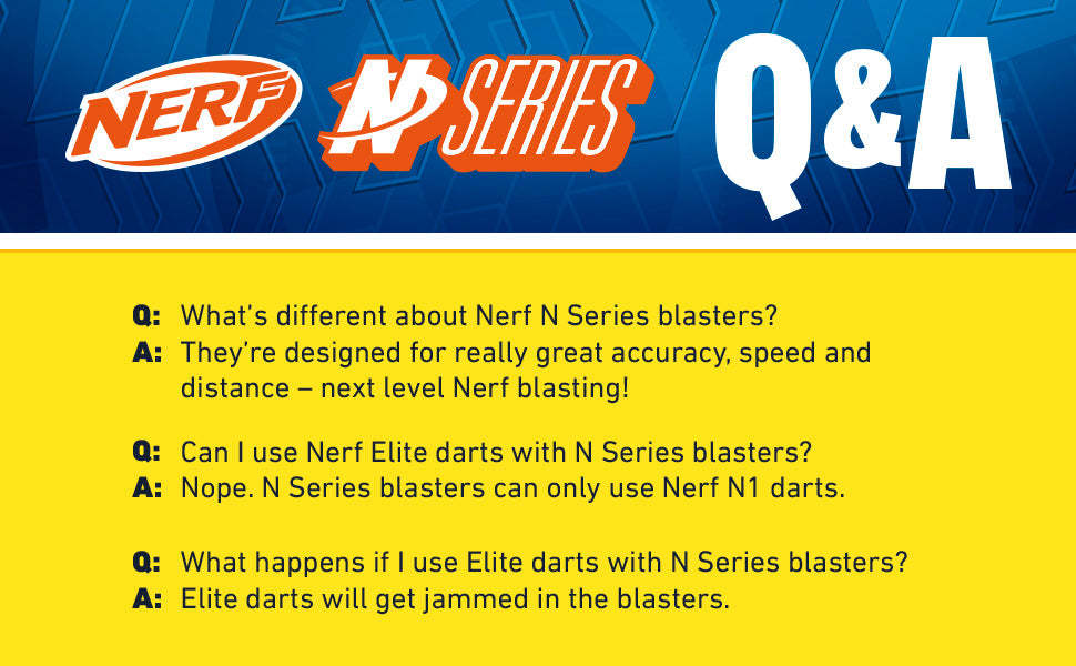 NERF N SERIES BLASTERS & DARTS: Experience EXTREME ACCURACY, SPEED, and DISTANCE with high performance Nerf N Series blasters and the revolutionary Nerf N Series N1 darts. Take your game to the next level with the gold standard in Nerf dart blasting!