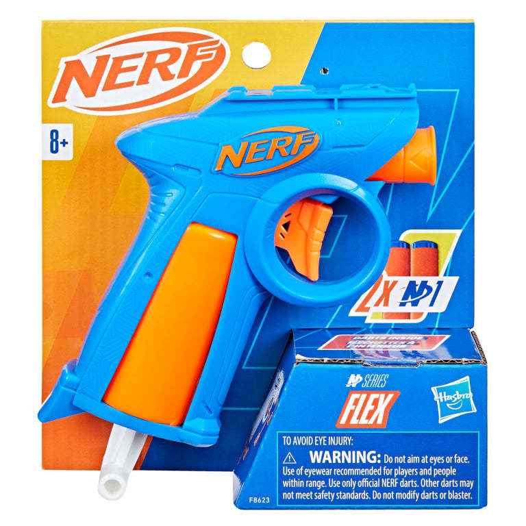 NERF N SERIES FLEX BLASTER: The Flex blaster is designed for stealth, with a compact size that makes it perfect for those moments when you need to blast a surprise extra dart or two in battle