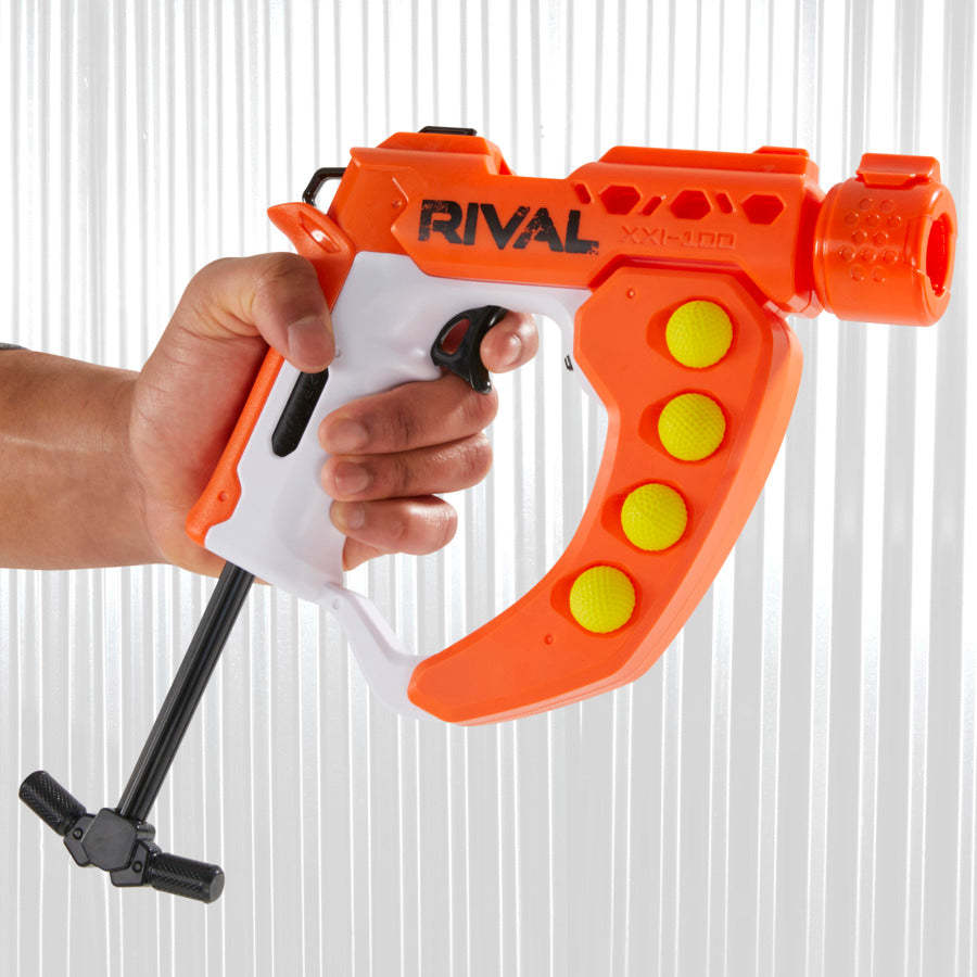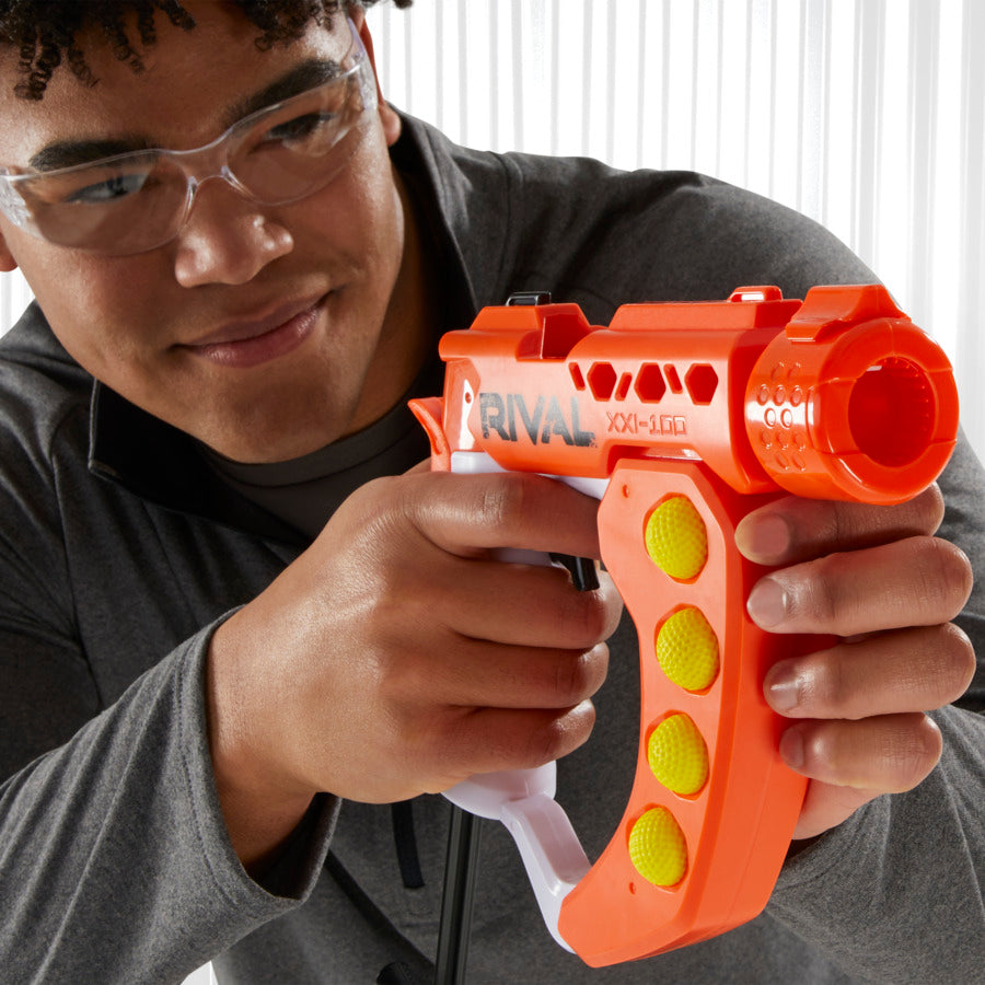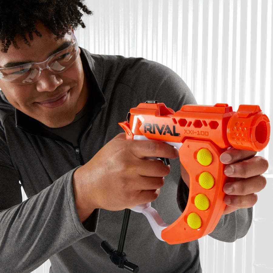 SELECT YOUR CURVE: Select your curve mid-battle to fire around objects to give you the ultimate strategic competitive advantage with the Nerf Rival Curve Shot Flex XXI-100 blaster.
