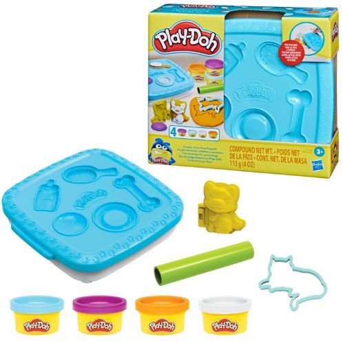 • PLAY-DOH PET SET: This Play-Doh set lets kids make super silly cats, dogs, and pet accessories. Set comes with 4 Play-Doh colors and 3 tools that can be stored inside the convenient storage container when playtime is over
