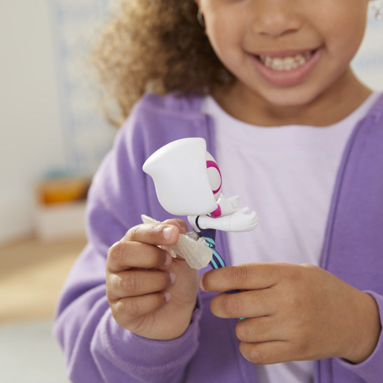 IMAGINE SENSATIONAL SPIDEY ADVENTURES WITH FIGURE & ACCESSORY: Inspire bold, creative play with this Marvel Spidey and His Amazing Friends Ghost-Spider figure and Web Wings accessory that clips on back